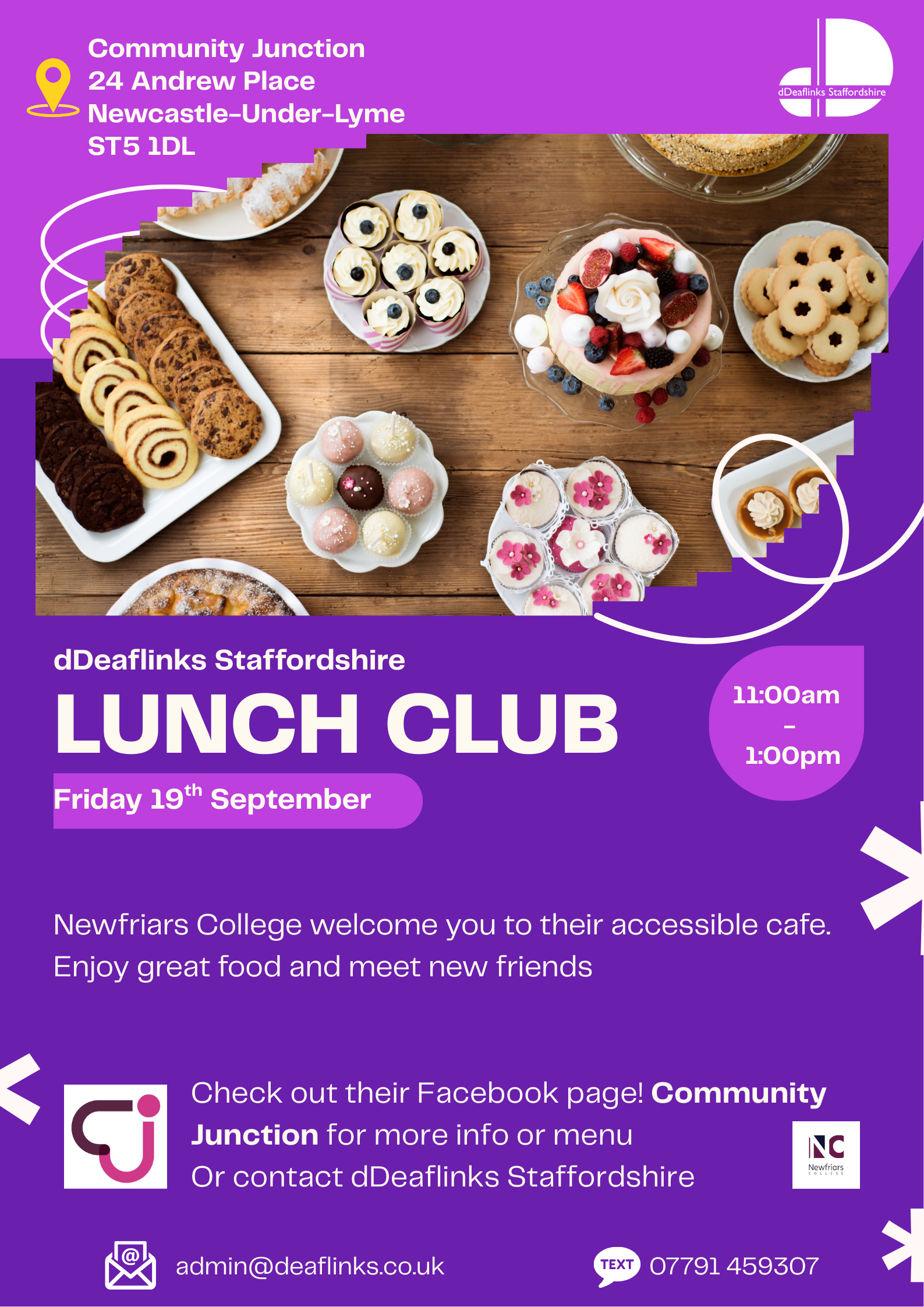 dDeaflinks Staffordshire Lunch Club at Community Junction, 24 Andrew Place, Newcastle-under-Lyme, ST5 1DL